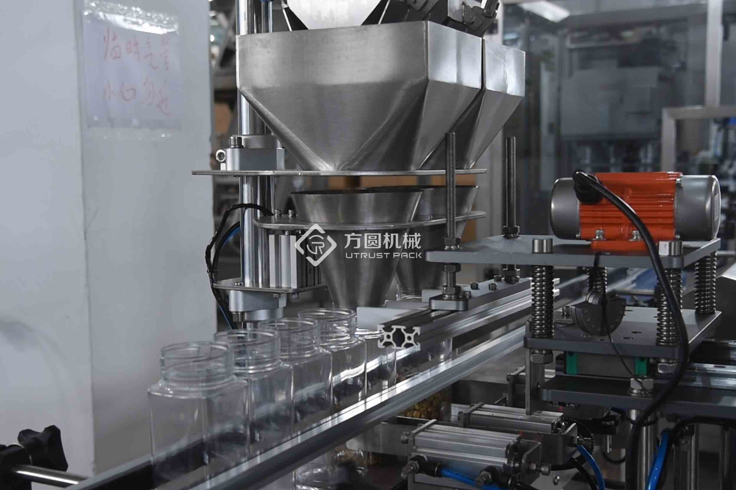 The first stop is the fully automatic linear feeding machine, which had two flexible dual stations, like the two round front paws of a squirrel, opening its bow left and right, and is very busy. the combination scale provided by the customer accurately poured me and my friends into a 55mm detachable hopper,and then the vibration platform began to work with a "thump" sound. With a slight vibration,my friends and I obediently lay flat in the can, avoiding the gaps caused by stacking. Under the efficient operation of 30-40 cans per minute,each can is filled to the brim and not a single nut will be wasted.